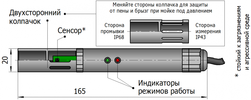 • Система индикация датчика сообщает о самодиагностике и режимах работы.