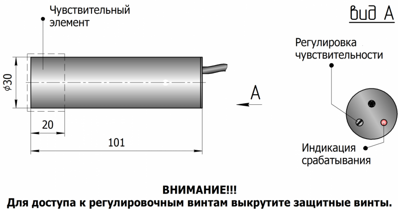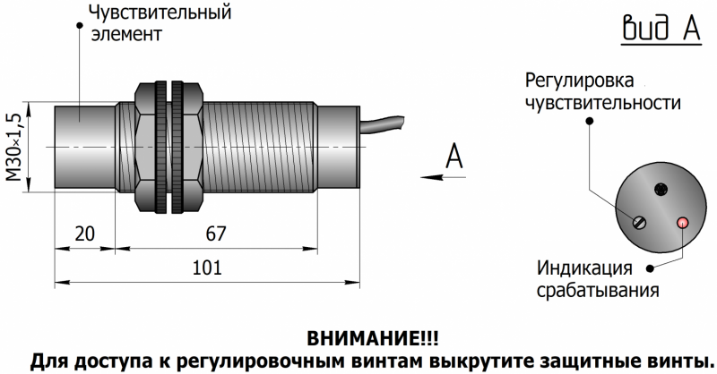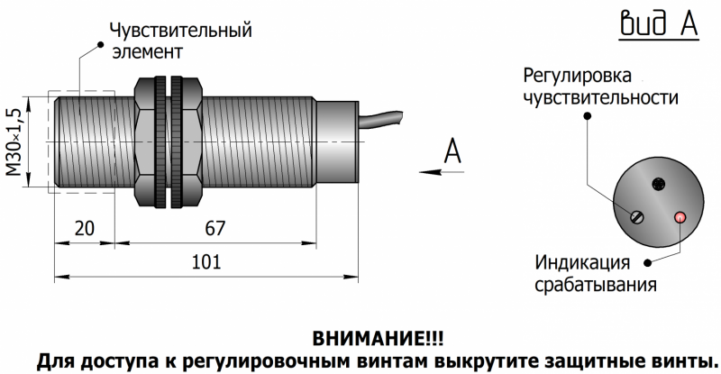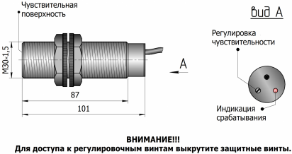 Типоразмер: M30x1,5 (с резьбой) серия М30х1,5 мм с задержками срабатывания и отпускания | выносной ЧЭ | резьба до конца сенсора |