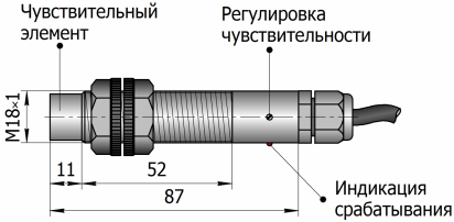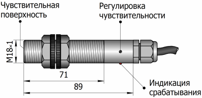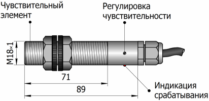 Типоразмер: M18x1 (с резьбой) серия М18х1,5 мм с задержками срабатывания и отпускания | выносной ЧЭ | резьба до конца сенсора |