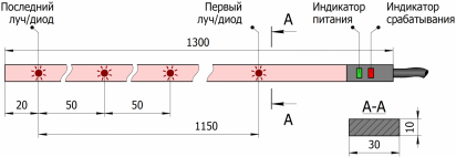 BOREL01-S2000-24-50-D барьер оптический лифтовой Ширина барьера номинальная: 2000 мм Лифтовой | 24 луча, разрешение 50мм | высота 24*50=1200мм | ширина 2 м | 24VDC |