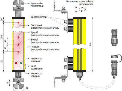 • Устройство относится к Типу 4(высший тип безопасности) надёжности согласно ГОСТ IEC 61496-1-2016.