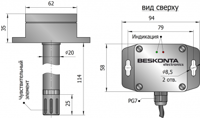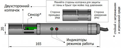 • Чувствительный элемент защищён съёмной крышкой и покрыт антикоррозионным слоем.